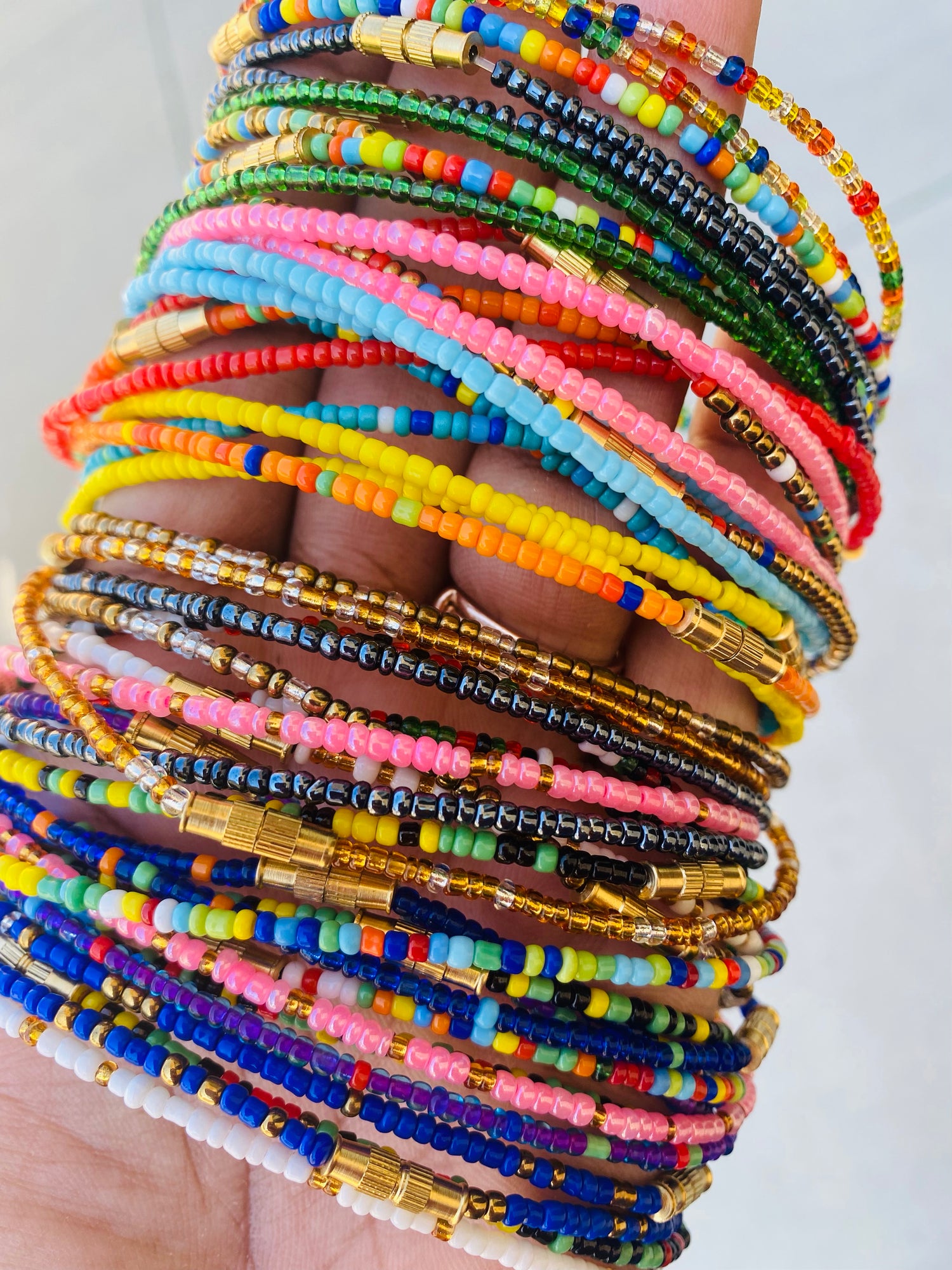 Adjustable to fit all waists sizes small to X-large. Measure your waist to determine how long your waist beads should be. Once size is determined waste the excess beads, then tie. Can be worn on your waists, or hips. Colors may vary.